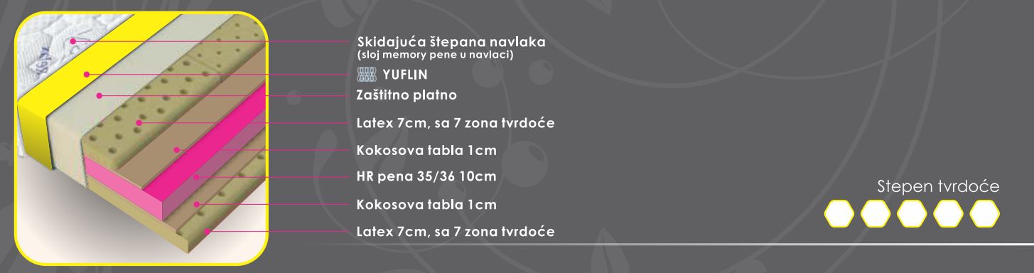 Savršen dušek za idealan psihofizički odmor i opuštanje. Ono što ga karakteriše je vrhunska kombinacija visokokvalitetnih materijala idealne gustine i tvrdoće.
