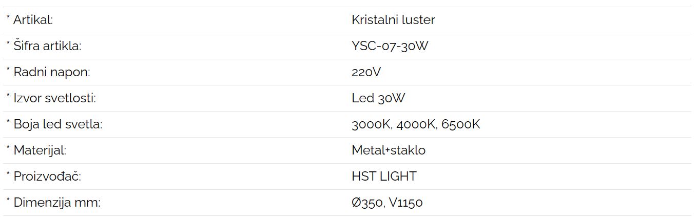 Kristalni luster YSC-07-30W